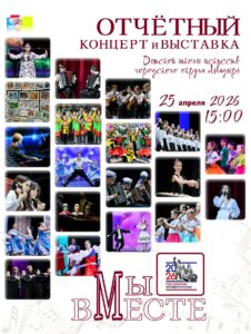 Дет­ская шко­ла искусств город­ско­го окру­га Ана­дырь при­гла­ша­ет жите­лей и гостей горо­да на отчёт­ный кон­церт и выстав­ку твор­че­ских работ «Мы вме­сте!», объ­еди­ня­ю­щих в себе яркую кон­церт­ную...