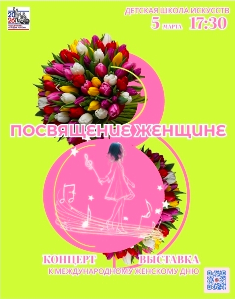 Детская школа искусств городского округа Анадырь анонсирует проведение праздничного концерта и выставки творческих работ «Посвящение Женщине», приуроченных к Международному Женскому Дню. Мероприятие состоится 5 марта 2026 года в 17:30 по адресу: город Анадырь, улица Южная 17А. В программе вокальные и инструментальные номера в исполнении солистов и творческих коллективов Детской школы искусств, наполненные искренними чувствами и весенним настроением. В экспозиции творческих работ обучающихся будут представлены рисунки, в которых юные художники с любовью отразили красоту, нежность, силу и многогранность женской натуры. Мероприятие «Посвящение Женщине» станет искренней данью уважения и благодарности всем женщинам матерям, бабушкам, сестрам, женам, педагогам за их мудрость, красоту, стойкость духа и безграничную любовь, которые делают мир светлее. Детская школа искусств приглашает Вас окунуться в атмосферу творчества и поздравить дорогих женщин с наступающим 8 Марта.