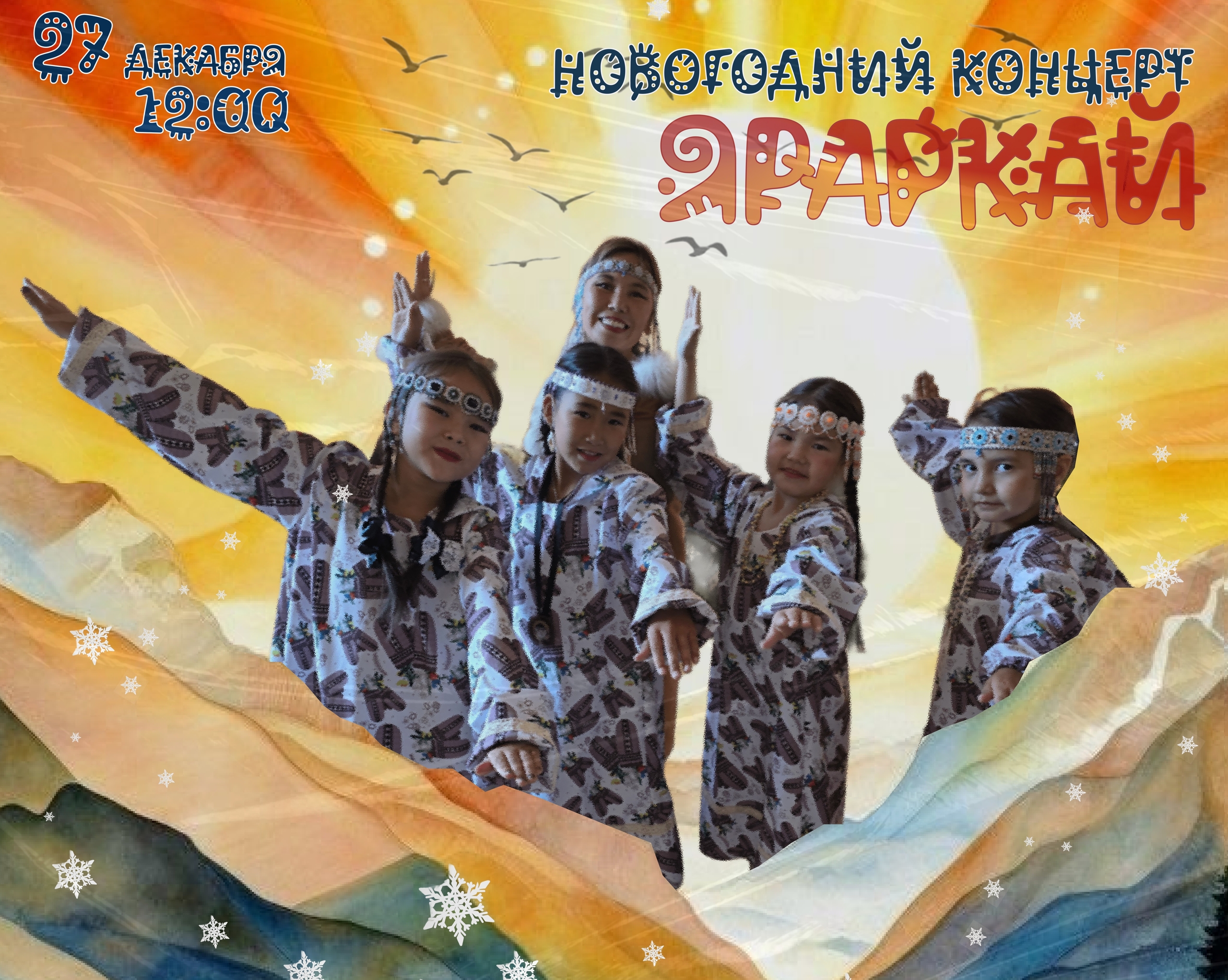Приглашаем Вас окунуться в мир традиций и ярких красок на новогоднем концерте фольклорного ансамбля «Яраркай»! Наши юные фольклористы исполнят для Вас песни на родном языке, национальные танцы, скороговорки и познакомят с богатым наследием народов севера! Этот концерт станет прекрасным подарком для всей семьи, согреет сердца теплом родной культуры и напомнит о важности сохранения нашего наследия для будущих поколений.
