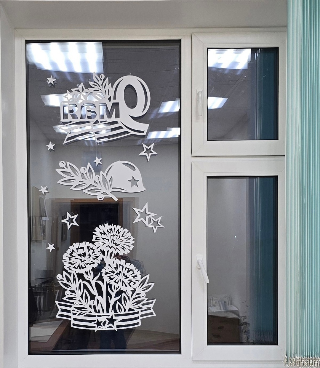 В рамках акции «Окна Победы» преподаватели и учащиеся Детской школы искусств украсили окна школы тематическими силуэтными изображениями, посвящёнными Году Защитника Отечества и 80-летию Победы в Великой Отечественной войне. Эти ажурные композиции стали символом памяти, уважения и благодарности поколению победителей. Для оформления были выбраны знаковые образы военного времени: мужественные фигуры солдат, сцены прощания и встречи, вечный огонь, ордена и медали, символизирующими героизм и самоотверженность защитников Родины. Каждый элемент оформления продуман до мелочей: аккуратные линии, выразительные силуэты и тонкие узоры создают эффект живых картин, перенося зрителя в атмосферу тех героических лет. Благодаря этой инициативе окна Детской школы искусств превратились в символ памяти, объединяя учеников, педагогов и всех, кто видит эти торжественные композиции, в едином стремлении сохранить историческую правду и передать её будущим поколениям.